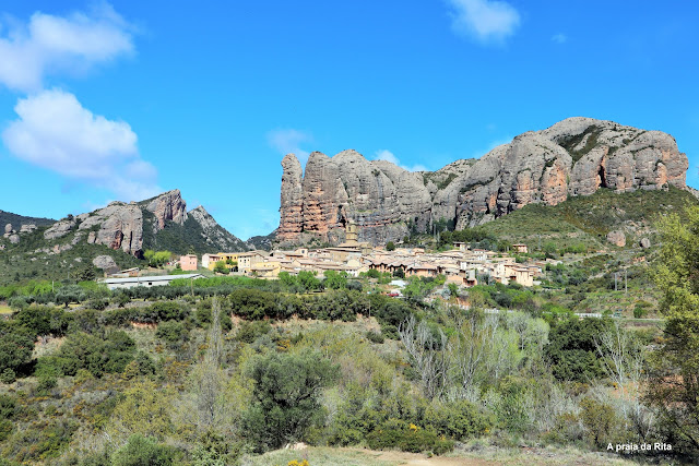 Logo pela manhã partimos para uma caminhada por entre o casario de Agüero, um pequeno município com pouco mais de 160 habitantes, situado no sopé dos Mallos, seguindo um trilho que nos levaria, também, a contornar essas impressionantes formações rochosas, sem dúvida o maior cartão de visita de Agüero. Os monólitos são especialmente famosos entre os praticantes de escalada, que aqui encontram paredes verticais ideais para a prática desta modalidade.